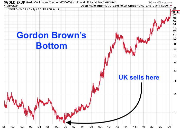 If you were watching markets at the turn of the millennium, you’ll remember it. Between 1999 and 2002, Gordon Brown — then Chancellor of the Exchequer — sold off nearly 400 tonnes of Britain’s gold reserves. It was a decision met with confusion and criticism at the time, and one that has aged poorly.