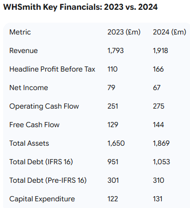 When examining a company's financial statements, it is crucial for a investor to look beyond the top-level numbers and understand what they truly represent. In WHSmith's case, some reported figures can be misleading. For instance, a quick glance at the company's net income for the past year shows a figure of just £7 million , which seems concerning. However, this number is a result of one-off accounting items and is not the best measure of the company's underlying performance. A better metric to use is the company's "Headline profit before tax," which was a much healthier £166 million in 2024. This is the number that more accurately reflects the day-to-day profitability of the business.